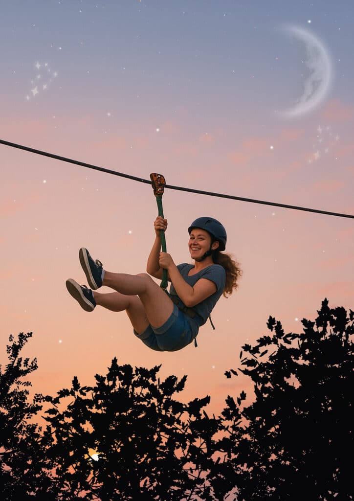 Op zaterdag 21 juni, de langste dag van het jaar, verandert ons klimbos in een plek vol magie. Wanneer het zonlicht maar blijft hangen tussen de bladeren en de avond zich langzaam aandient, nodigen we je uit voor een uniek avontuur: Midzomernachtklimmen!