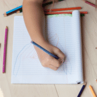 Kinderhandje die aan het kleuren is